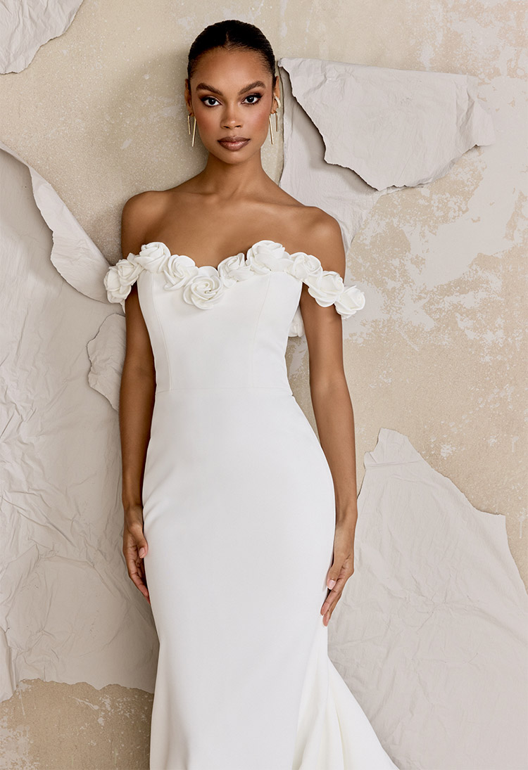 Vous planifiez un mariage civil et désirez une tenue courte ou un costume-pantalon/combinaison ? Nous disposons également d’une gamme complète d’ensembles modulables ainsi qu’une belle collection de chaussures de mariée personnalisables de même que des accessoires comme des bijoux de cheveux et des voiles.